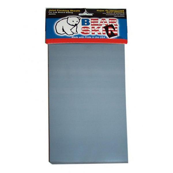 Bearskin joint flashing is a plastic sheet for use as a joint flashing behind every butt joint in the siding.